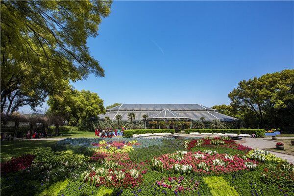 在景观温室前后,武汉植物园还通过几组郁金香花艺景观打造浪漫的郁金香花园。
