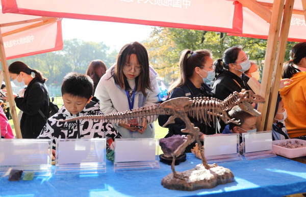 公众观赏岩矿化石与恐龙标本