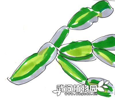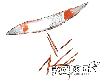 削接穗:用锋利的刀具削去接穗下部的两面,直到露出中间筛导管