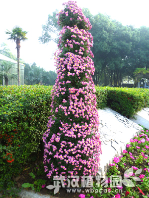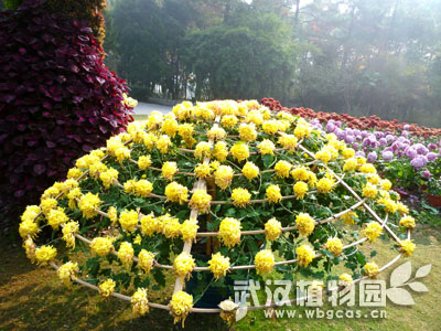 通过绑扎牵引使得菊花分层向上生长,整体造型如同宝塔。