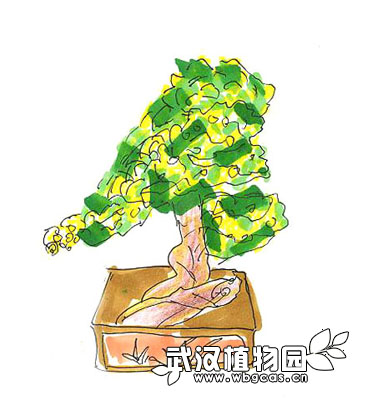 仿效山间野生小菊悬垂的自然姿态,整枝成下垂的悬崖状。
