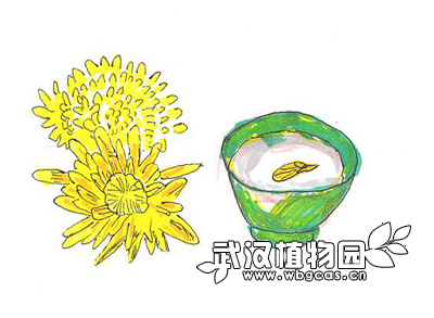菊花羹:将菊花与银耳或莲子煮或蒸成羹食,加入少许冰糖,可去烦热,利五脏,治头晕目眩等症。