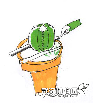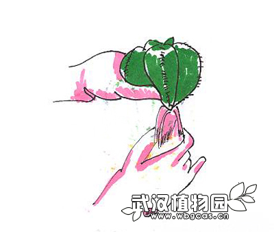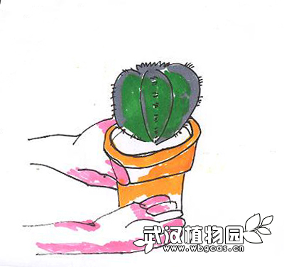 换盆前一周停止浇水,使盆土完全干燥。在进行换盆之前,应先戴上厚手套,以免被仙人掌的刺扎伤。