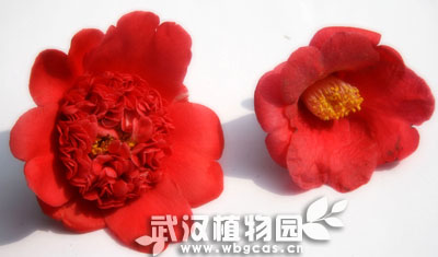 左边:花蕊瓣化的重瓣花 右边:正常的单瓣花
