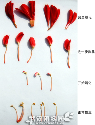 图2 山茶花花蕊瓣化的过程(以雄蕊为例)