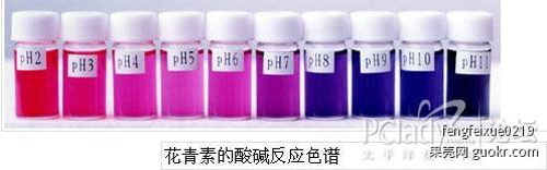造就花儿色泽最主要的色素,叫做“花青素”,它分布在细胞的液泡内,控制花的粉红色、红色、紫色及蓝色等颜色变化。花青素很调皮,在不同的环境下,会形成不同的颜色。在酸性溶液中,它呈现红色,酸性愈强,颜色愈红,比如一串红等。在碱性溶液中,它呈现蓝色, 碱性较强,会成为蓝黑色, 如墨菊、黑牡丹等。而当它处于中性环境的时候,则是紫色,比如桔梗花等。