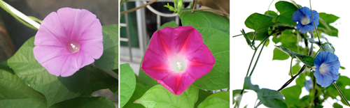 牵牛花花色一日三变(粉红——紫红——蓝色)