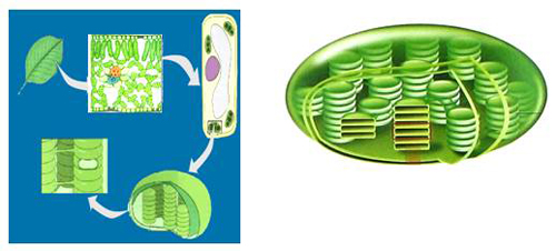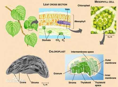 春夏期间,叶片细胞的叶绿体内含有大量叶绿素