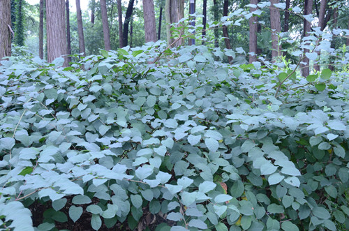 虎杖是一种原产我国入侵到国外的植物,19世纪50年代被作为观赏植物引入英国,之后蔓延成灾,影响了英国本土植物的生长。它的生命力极强,只需一个月就可长到1米高,最终可以长到3米高。其根系穿透能力强,能够从水泥板或砖缝中钻出来并依靠强壮根系把裂缝撑大,最终对建筑物造成破坏。其根系既可深入地下,又可横向扩散,难以拔干净,而未拔干净的根系可在土壤中潜伏10年以上,遇到合适机会再继续生长。