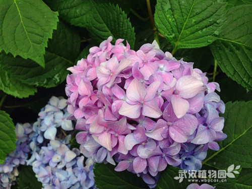 八仙花为虎耳草科八仙花属植物,低矮丛生灌木花卉,花色美丽,每年五月中旬初放,到夏至完全盛开,初开为绿色,随着时间的推移,颜色逐渐变白,再变为粉红色,最后变为紫红色。