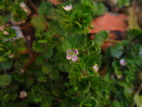 婆婆纳Veronica polita Fries,是一种武汉本地区常见的婆婆纳属植物,经常掺杂在粗犷怒放的阿拉伯婆婆纳之中,不开花的时候还真是很难发现它的踪迹。这种植物犹如东方人一般的含蓄,植株较小,花朵直径只有阿拉伯婆婆纳一半,平时极难张开,粉色的小花犹如害羞小姑娘脸上的绯云,让人怜惜,原产地不同的两种婆婆纳,刚好完美诠释了不同地域人们的性格特征,这种巧合也是极有意思的。