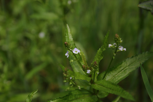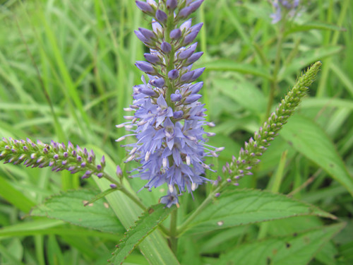 除此之外,婆婆纳们也不都是柔弱的近于匍地的小草,湖北有分布的朝鲜婆婆纳Veronica rotunda var. coreana (Nakai) Yamazaki就是一种生长在高山的高大婆婆纳,拥有很长的穗状花序,小花蓝色,如今人们已经成功地将它应用在观赏园艺之中了。