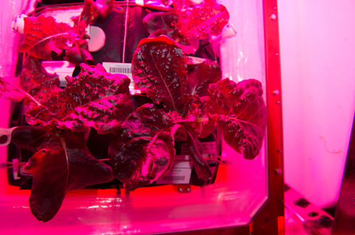 2015年8月10日,经过了33天的培养,三名航天员收获并品尝到了第二批在太空中种植的蔬菜—红色长叶莴苣(Outredgeous)。红色长叶莴苣,也就是我们平时所吃的某种生菜,生菜是叶用莴苣的俗称,菊科莴苣属植物。