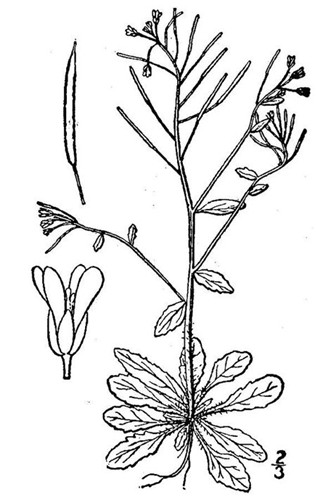 拟南芥,又名鼠耳芥、阿拉伯芥,与油菜一样为十字花科植物,一年生草本,植物较小,生长周期短,结实多,这些特点都使得拟南芥的突变表型易于观察,为突变体的筛选提供了便利。