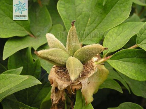 牡丹的果实为蓇葖果,长圆形,表面密被着白灰色的硬毛,成熟时沿心皮腹线开裂。以牡丹籽仁为原料压榨、精制制成的油状液体中很多项指标都超过被成为“液体黄金“的橄榄油。并且,牡丹籽油在2011年已经被国家卫生部监督局正式批准为我国的新资源食品,将来可能会加入我国食用油的行列。
