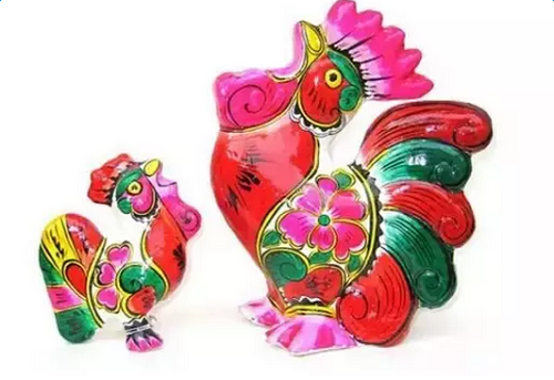 才不是,这个央视历史上的第三个春晚吉祥物,是由宝鸡市泥塑大师胡新民创作的凤翔泥塑“凤尾鸡”。