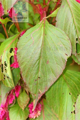 叶片卵形、卵状披针形或披针形,绿色常带红色,顶端急尖或渐尖,具小芒尖,基部渐狭;叶柄短或无叶柄。