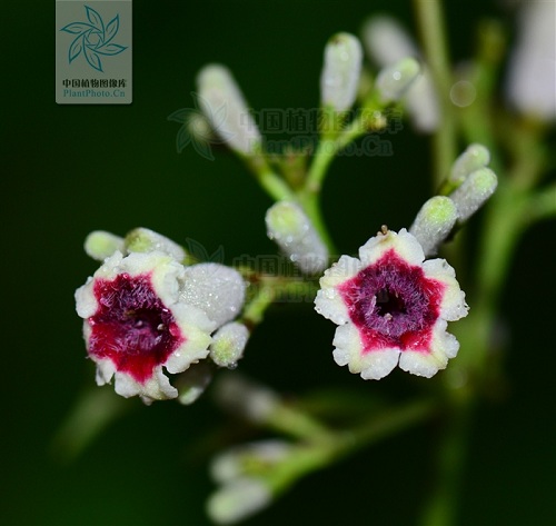 后叶开花;花紫色,杂性,雄花与两性花同株;伞房花序。萼片卵状披针形;花瓣椭圆形或倒卵形。
