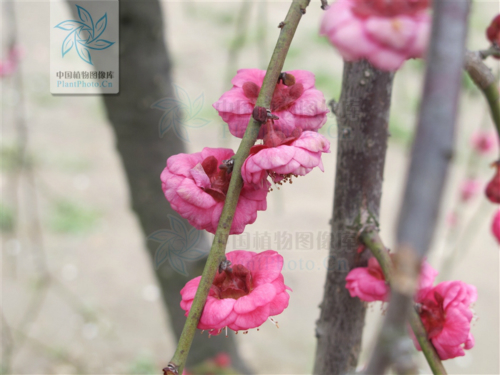 3、骨红垂枝型:花单瓣或复瓣,深紫红色,花萼绛紫色。如‘骨红垂枝’、‘锦红垂枝’等。
