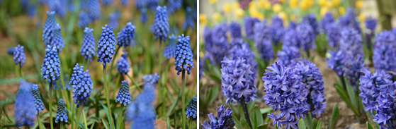 左图:葡萄风信子;右图:风信子