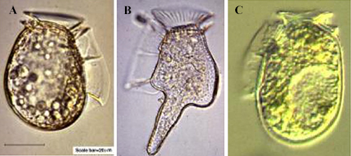 形形色色的鳍藻(从左至右分别为倒卵形鳍藻、具尾鳍藻和渐尖鳍藻)