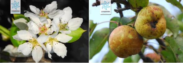 其实南果梨并非梨属一种,而属秋子梨系统中的极优良品种之一,系统是啥?简言之,这系统就是一个种的所有品种的总称,这南果梨就是秋子梨此种的一个品种,常见的京白梨、香水梨等也属秋子梨系统哦!野生秋子梨在我国多分布于华北及东北诸省100-2000米左右寒冷而干燥的山区林地,以叶大而边缘尖锐锯齿加之果实上宿存有萼片,使其与本属其他种所区分。5月的花期使其在春时绽放,白色的小花聚集于宽大的树冠上,在林间宛如洁白的毛毯披于这山野,一片雪白,山花衬托显得格外脱俗高雅。秋时果熟,黄绿色的果实挂满枝头,吊足了胃口!不过可别急着吃,因为他们不能在树上直接成熟哦!这时候吃,那只会是一个酸涩!与香蕉、猕猴桃一样,需要经过一段时间的放置,等果色变黄,香气四溢时,你就可以一饱口福,尝这美味啦!