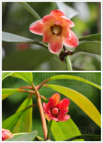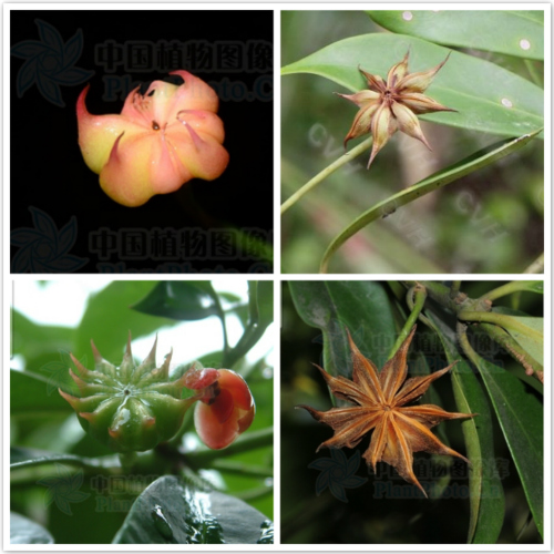 (上图为红茴香的花;下图为红毒茴,图片来源中国植物图像库,刘军)