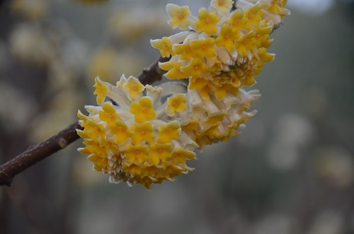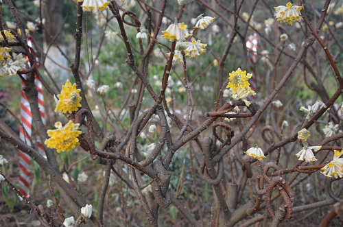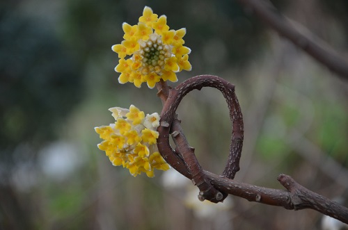 正是乍暖还寒时候,黄昏时漫步于花境大道,感受着这一刻的宁静美好。各色梅花争奇斗艳,不时有香气扑面而来。行至花园餐厅附近,一阵浓香来袭,竟不是梅花熟悉的味道。寻香至一株灌木前,一簇簇像绣球却比绣球小的明黄色的花,毛茸茸的挂在枝头,甚是可爱。粗壮的褐色小枝竟裸露在外面,没有一片遮羞的叶子。更神奇的是,这么粗壮的小枝竟然打了一个又一个结,初看时还以为是园艺工人为了造景人为打的结,直到看到它的名字:结香,才明白这是一个心灵手巧的“植物匠人”。