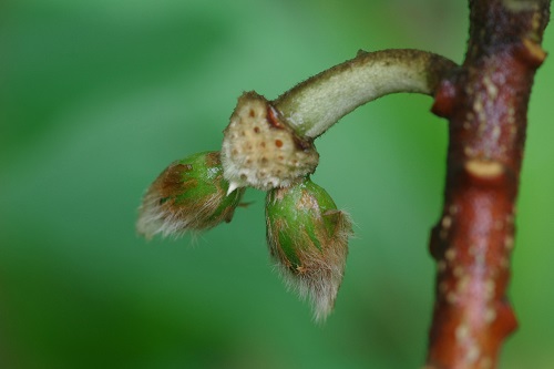 果椭圆形,绿色,长约8毫米,直径约3.5毫米,顶端被毛。冬末春初开花,春夏间结果。由于结实率低,果实并不常见。下面这两张果实的照片还是从植物学大神那里借来的。