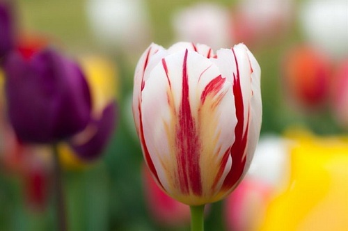 荷兰人并不喜欢开纯红、黄的郁金香,而是将开白色花,花瓣带着条状或带状红色细纹的郁金香视为珍品。