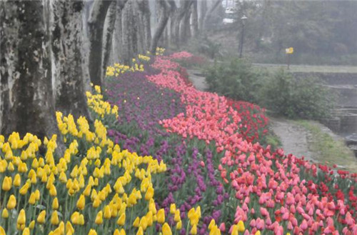 平坦的地势、开阔的视野,数不尽的郁金香带来的震撼。选用的品种最好是同花期,颜色鲜亮,但品种不易过多。