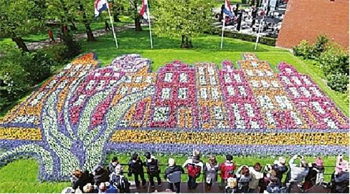 郁金香是荷兰的三大国宝之一,每年春季赏郁金香就仿佛置身荷兰,为了更好的有库肯霍公园赏花的既视感,增添了不少相关道具比如郁金香种球雕塑、风车等。