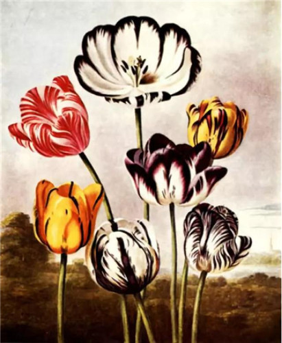 16世纪末,郁金香传入荷兰,人们对这种有着硕大花瓣、绚丽花色的花朵极为着迷。17世纪初,在荷兰,郁金香是地位与财富的象征。