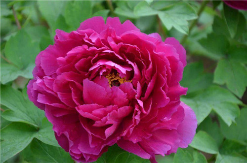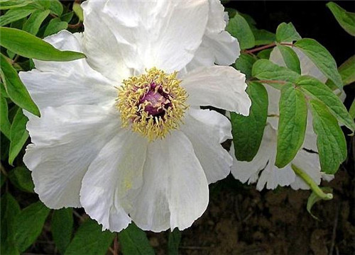 单瓣型牡丹基本保持了野生牡丹花的原始形态。它的花瓣两到三轮,花朵硕大极力向外张开,雄蕊和雌蕊向外完全袒露,有着霸气外露的气势。常见的品种有‘凤丹白’、‘石榴红’、‘鸦片紫’、‘紫霞仙’等。