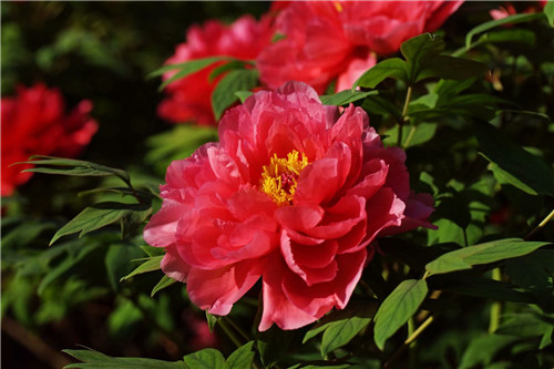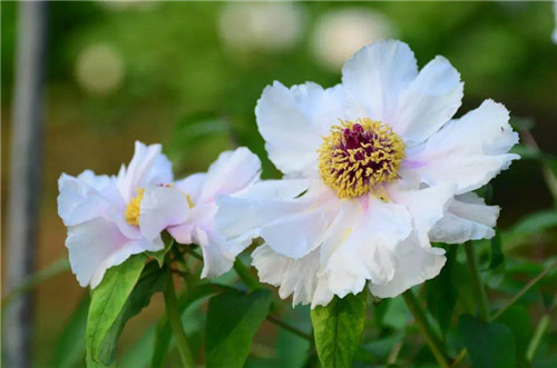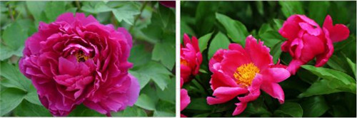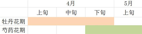 牡丹花期较早,芍药稍晚,两者的群体花期相差15-20天。