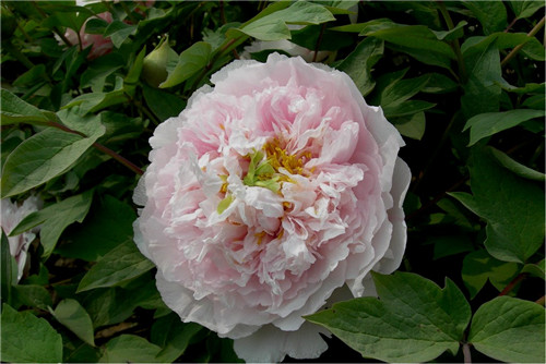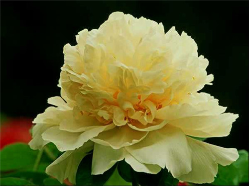 外层花瓣和内层花瓣区别较大。花瓣共分为2-5轮,外层花瓣宽大平展,内层雄蕊大部分或全部瓣化成细碎曲皱花瓣,瓣群密集高耸,整体看上去形似皇冠,非常独特。代表品种有‘蓝田玉’、‘璎珞红’、‘姚黄’等。
