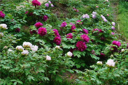 可以是以牡丹为主题的公园,或是综合型公园、植物专类园、风景区内牡丹观赏园区。按一定的品种分类原则,结合园林景观布置,集中栽植大量牡丹优良品种,可以突出牡丹品种的特色,便于游人观赏及园艺管理,以欣赏其姿、色、香、韵为主,呈现出姹紫嫣红、花团锦簇、艳冠群芳的景色,让人叹为观止。