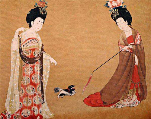 唐代周昉《簪花仕女图》,右侧女性头戴牡丹花