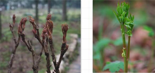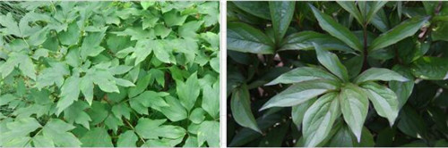 左图:牡丹的茎秆;右图:芍药的茎秆(图片来源于中国植物志)