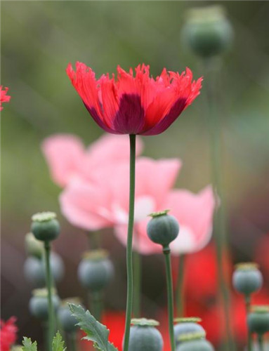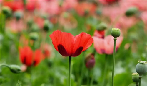 它的花瓣轻柔纤薄,色彩绚烂华美,叶片青葱碧绿,植株亭亭玉立,吸引无数公众前来观赏,它就是鼎鼎有名的毒品原植物——罂粟。