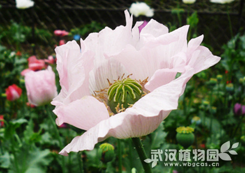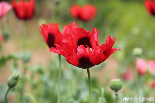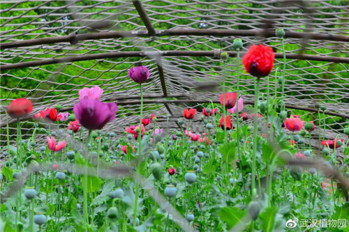 武汉植物园每年种植罂粟大概1000余株,含罂粟品种20个。除了常见的紫色、红色罂粟,还展示了白色、粉色和杂色罂粟。