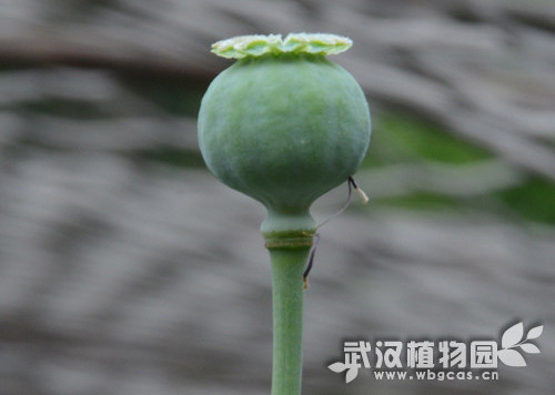 在武汉,4-5是罂粟的花果期,花瓣落尽,椭圆形蒴果亭亭的立在茎秆顶端,随着时间的推移,罂粟果实不断膨大,这青绿色的、未成熟的果实便是制取鸦片的原料。
