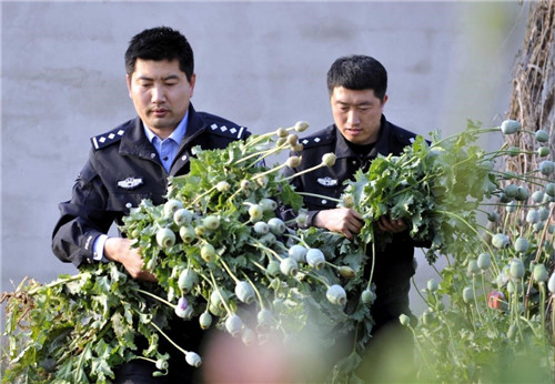公安机关铲除非法种植的罂粟(图片来源于http://police.news.sohu.com/20170509/n492389658.shtml)