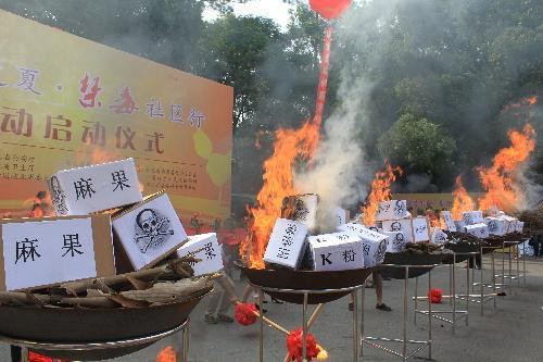 武汉植物园焚烧罂粟禁毒活动