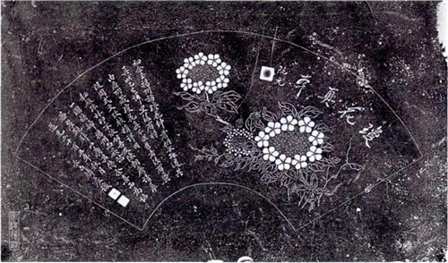 在传世不多的琼花绘画中,今扬州博物馆藏有一珍贵扇面石刻,由清人阮元、完颜麟庆、陈朗斋合作完成,绘九朵构成之古琼花,上题“琼花真本”,殊为难得。扇面由陈朗斋临摹,完颜麟庆题跋,阮元题识。由题跋可知,石刻扇面中所绘琼花形象来自于一本钤有秘殿珠林藏印的“琼花真本”绘画。因该画属宫中之物,完颜麟庆不敢私留,才请好友陈朗斋按图临摹,阮元题识,他自己题长跋留念。此外,题跋中还提到完颜麟庆准备日后将此“琼花真本”嵌入扬州琼花观中,因为琼花观正是那株举世无双的古琼花的栽植之所。这三位清代名人由探寻琼花真容而结缘,尽管没能查到“琼花真本”石刻的真正资料来源,但他们孜孜不倦的治学态度和老而弥笃的深情厚谊,更为其增添了几分珍贵。