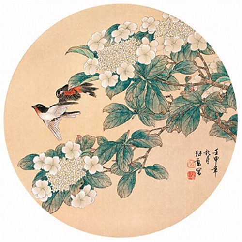 然而,仅据宋人的文字描述,我们仍未能真正认识琼花的真面目。幸好宋代画家曾绘过不少《琼花图》,其中一部分尚留传至今。如宋人韩佑的《琼花真珠鸡图》绘琼花一枝,锦鸡两只,雄者立于石上,雌者立于地下。琼花树叶色翠绿,花色洁白。仔细端详,可以发现树上的琼花多为一花九朵,确与聚八仙不同。