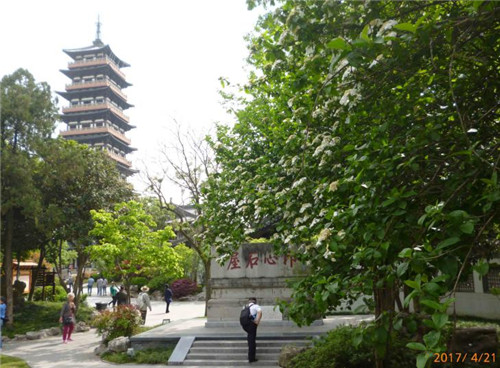 大明寺 琼花与“印心石屋”碑、栖灵塔相邻