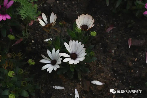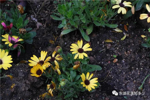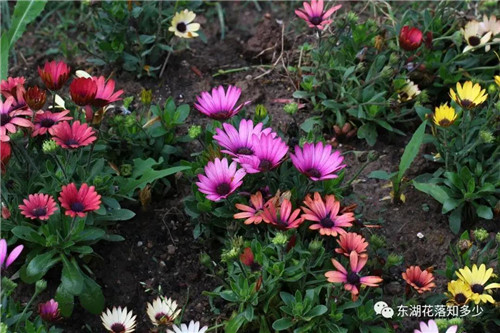 蓝目菊Osteospermum ecklonis (DC.) Norl.,又名非洲万寿菊、非洲雏菊、大花蓝目菊,花色极多,花大,植株低矮,很适合做观赏地被。