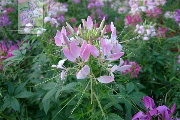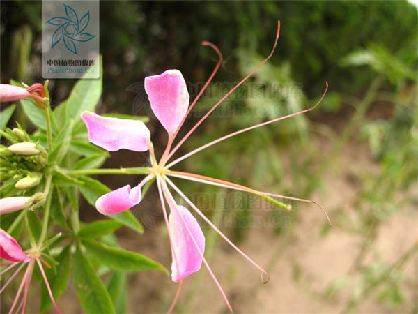 醉蝶花(Tarenaya hassleriana)白花菜科(Cleomaceae )醉蝶花属(Tarenaya)醉蝶花的植物叶片像伸开的手指,上部的“小叶片”其实是它绿色的苞片,长而壮实的花梗就是着生于苞片腋内。总状花序形成一个饱满的花球,花瓣轻盈飘逸,色彩红白相映,浓淡相宜,更是像一只醉了酒的蝴蝶伸着懒腰,慵懒的拉长着“四肢”。尤其是其长爪的花瓣,长长的雄蕊伸出花冠之外,形似蜘蛛,又如龙须,颇有趣味。醉蝶花是无限花序,一般从花序轴的下部先开花,慢慢向上,盛开的花花期很短,傍晚开放,翌日白天就会凋谢,因此又叫夏夜之花。它盛开的花朵犹如蜉蝣的生命,但正是她的努力绽放,才赢得了后代繁衍的机会。