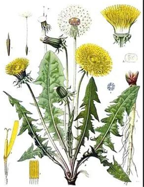 蒲公英植株中含有蒲公英甾醇、胆碱、有机酸、菊糖等多种药用成分,其性寒,味甘、苦,归肝、胃经,清热解毒,消肿散结,有利尿、缓泻、退黄疸、保肝利胆等功效。蒲公英可凉拌、炒食、做汤,是药食兼用的植物。